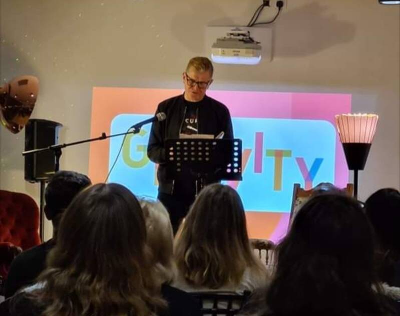 Performing at the Cheltenham Poetry Festival, 21.2.24