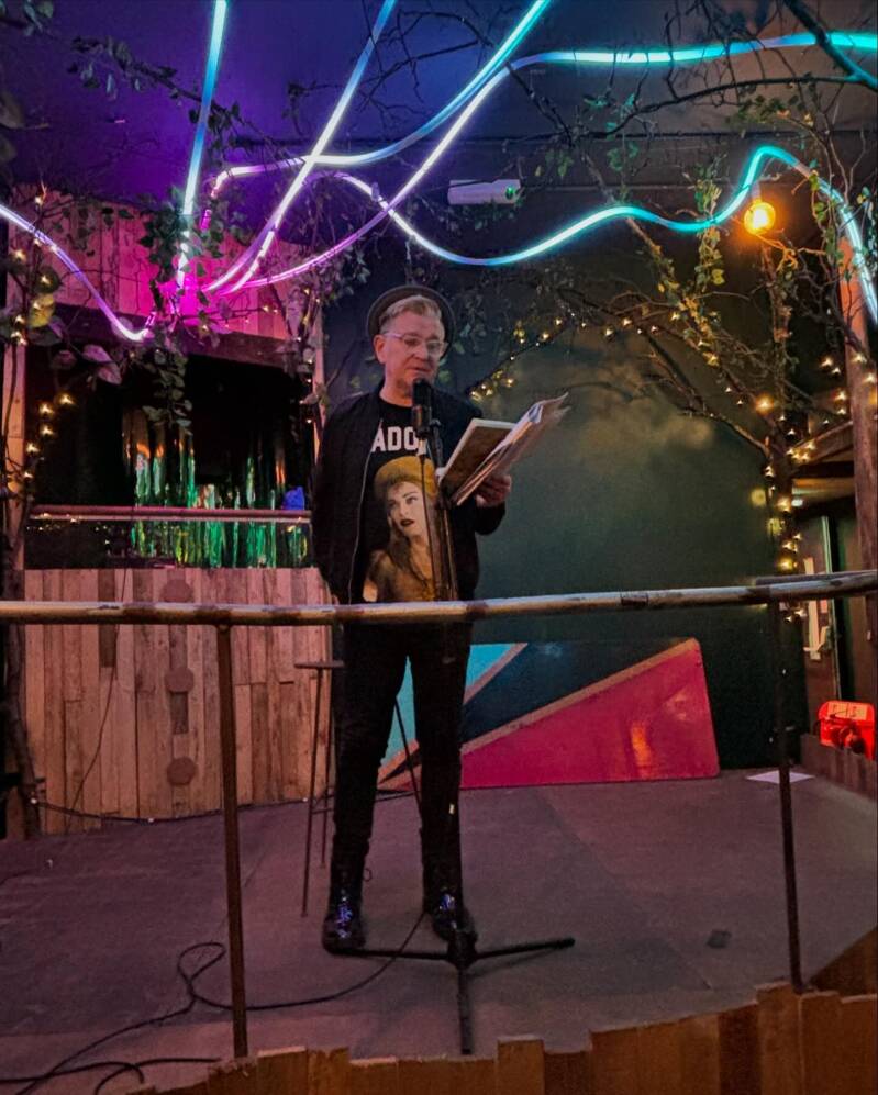 Performing in French at the Pangea multilingual event (Kazimier Stockroom, 19.11.24)