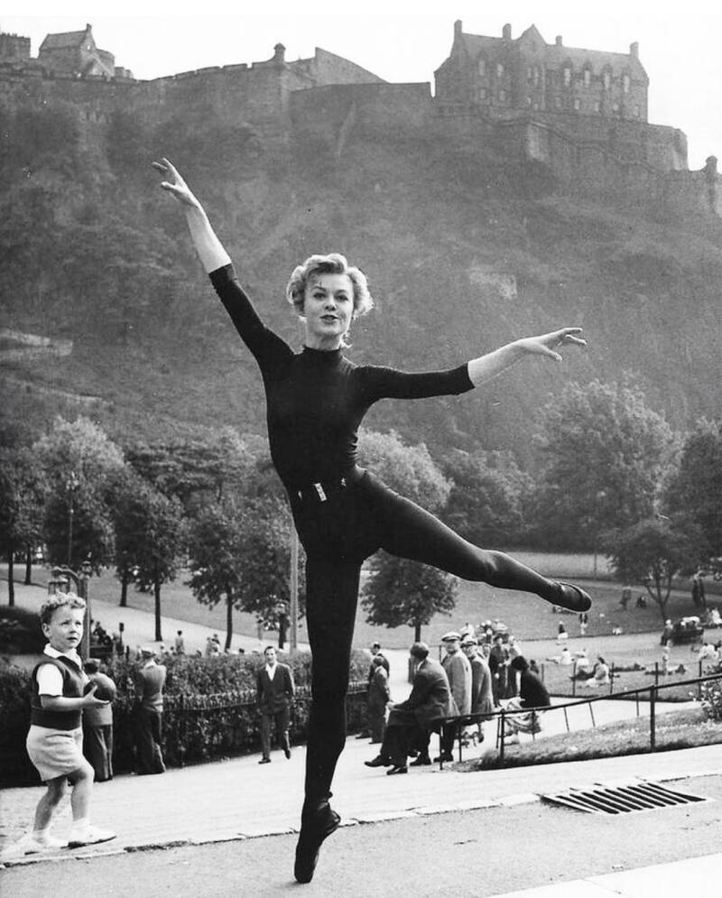 The incredible Vera Ellen poses in front of Princes Gardens whilst helping to create a future Ian Dury-themed homophonic pun.